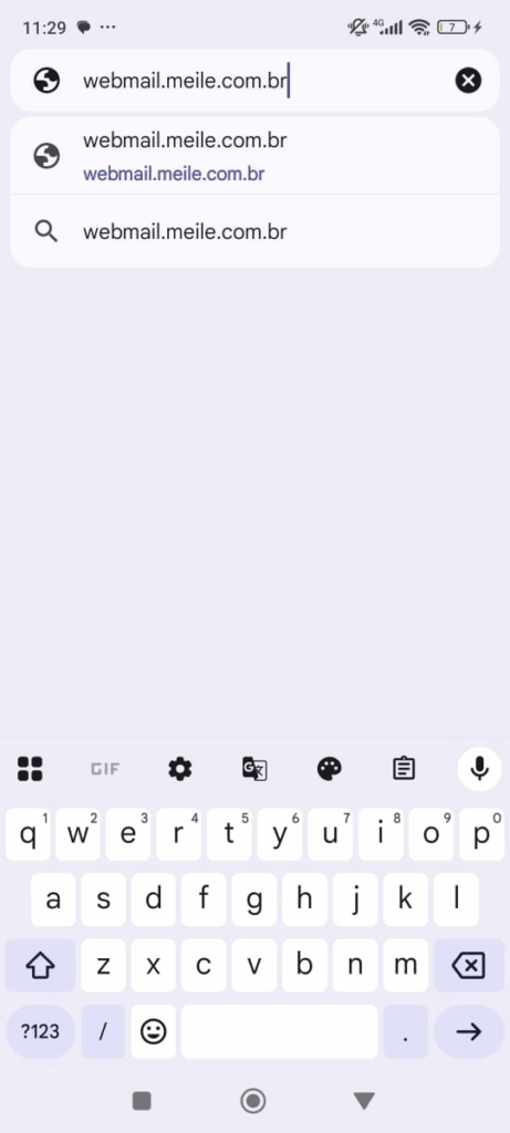 2. Digite na barra de endereço: webmail.SeuDominio.com.br (Exemplo: webmail.meile.com.br)
